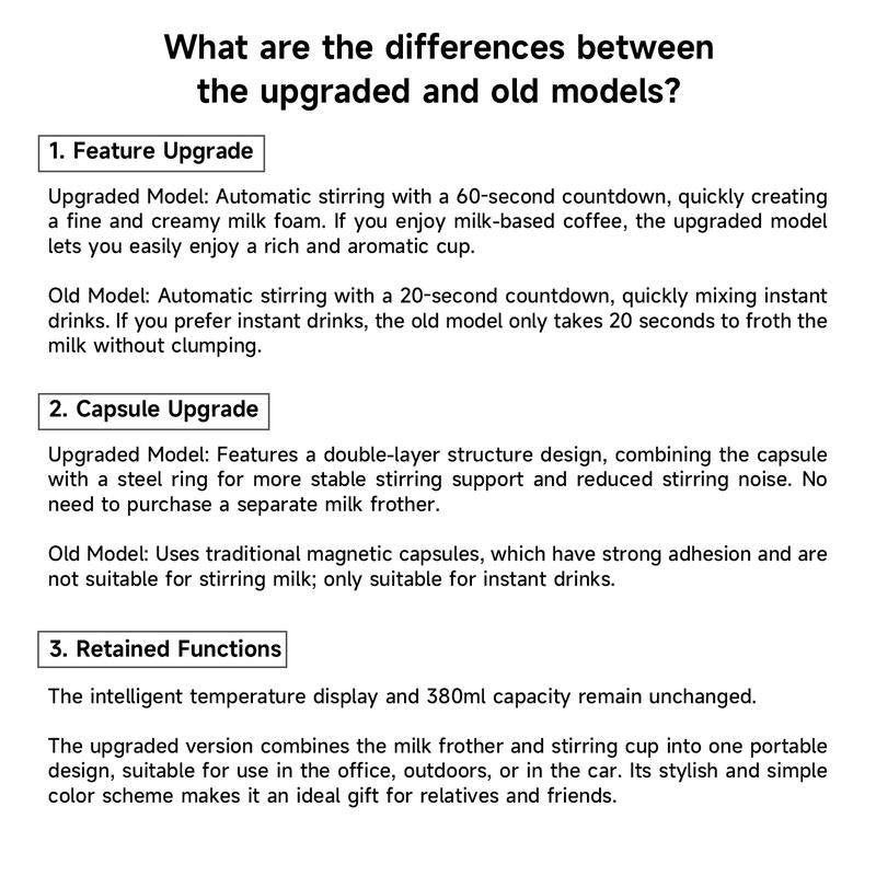 - ✨ Automatic mixing in 20 seconds — smooth drinks without spoons or clumps.